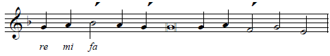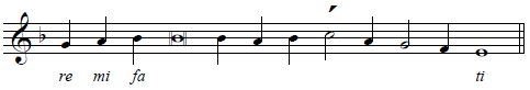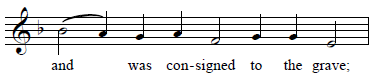 The B phrase has an alternate form which is used for very short text phrases; it drops the first two notes and starts on the half note:.
