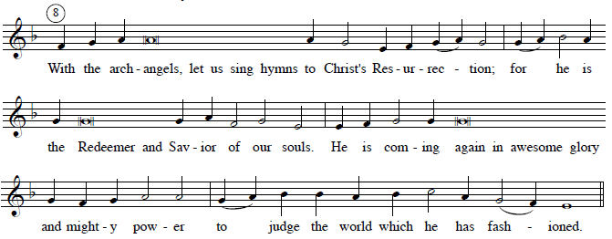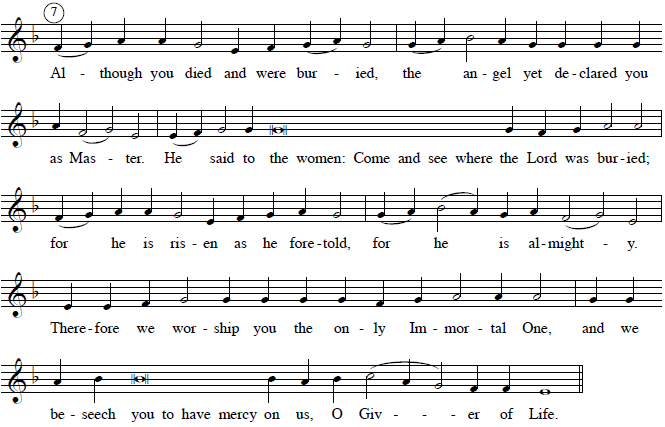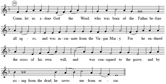 Finally, we sing "Glory, now and ever" to the samohlasen verse melody, and the dogmatikon in Tone 2 to the samohlasen sticheron melody.