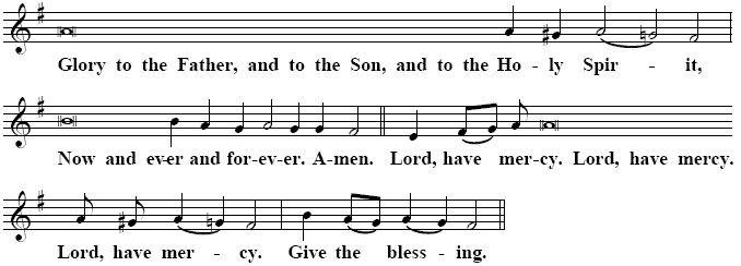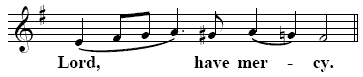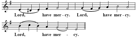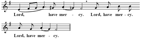 The Litany of Peace uses the same texts as when it is sung at other services, but the Lenten tone is used for the responses (listen). Here are the two "Lord, have mercy" responses, which are used in alternation: