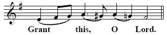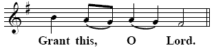 The litany uses the same responses of "Lord, have mercy" as at the Litany of Peace, and adds the following melodies for the "Grant this, O Lord":