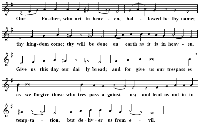 This setting distributes the text a little differently over the phrases of the Lenten tone, to keep related parts of the prayer together. The changes are not at all hard, but should be practiced so that the Our Father can be sung with steadiness.