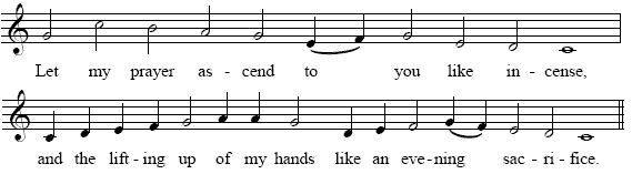 Having praised God and meditated on his Word, we again turn to praise, and our focus shifts to the sanctuary, as we sing again the opening verses of Psalm 140, and the priest incenses the altar from all four sides.