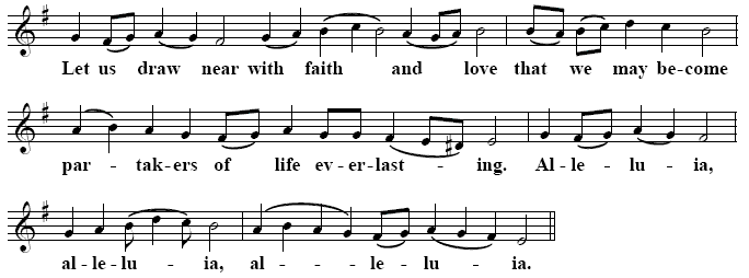 The first or A setting of the Communion Hymn uses the same melody as the Entrance Hymn: (listen)