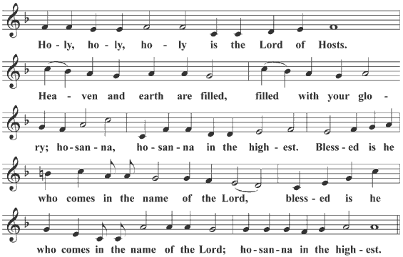 After the words, "Singing, shouting, crying aloud, and saying the triumphal hymn:", the people sing the hymn "Holy, Holy, Holy", which combines Isaiah's vision of the cherubim and seraphim before God's throne, with a psalm verse in praise of Christ. The Divine Liturgies book contains three settings of this hymn.