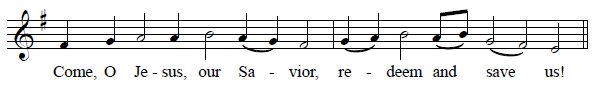 The first verse is similar to Isaiah 45:8: "Let justice descend, O heavens, like dew from above, like gentle rain let the clouds drop it down. Let the earth open and salvation bud forth." The remaining verses all follow the same pattern, addressing Christ and asking him to come and save us.