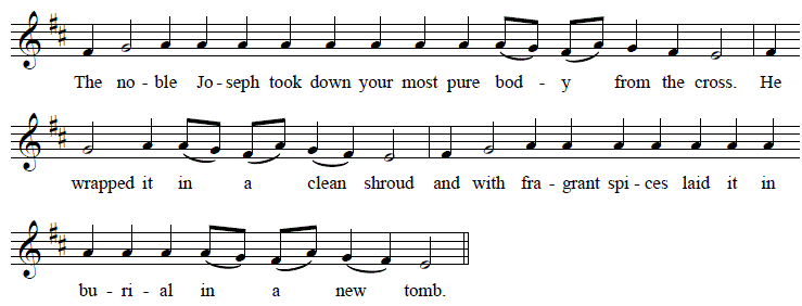 The following troparion is sung at Vespers on Great and Holy Friday, during the procession with the plashchanitza or burial shroud which symbolizes the body of Christ:
