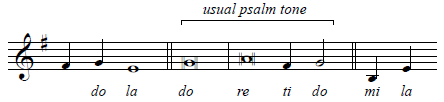 Normally, the verses of prokeimena and Alleluia are sung by a single voice to the usual psalm tone, beginning on do. But if this procedure is followed with the Tone 6 prokeimenon melody, there is a huge interval between the ending of the verse and the repetition of the prokeimenon or Alleluia: