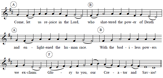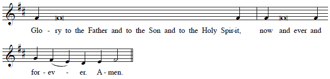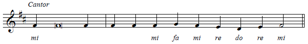 Notice that the F phrase is long enough that it usually has no need for a reciting tone (several words on one syllable). Instead, there is a slightly simpler form of the F melody that is used when the final phrase is short: