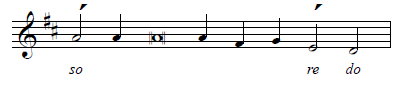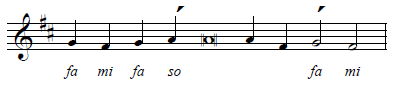 Here is the samohlasen verse melody in Tone 7. Be careful: although it is tempting to start on do, the key signature (D) actually means we start on mi.