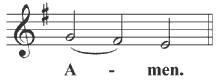 This blessing is in a minor key (la - ti - do, do - ti - la), and the "Amen" you sing in response will use exactly the same three pitches as the last three notes of the priest's blessing: