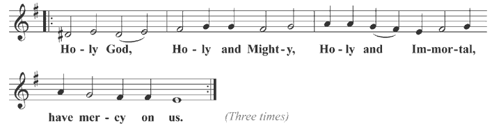 Holy God, Holy and Mighty, Holy and Immortal, have mercy on us. (3 times)