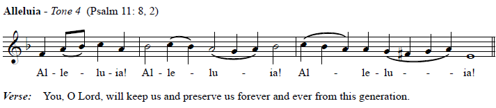 And noted above with the processional psalm, there are several translations of this prokeimenon in circulation; use the one that is in front of the congregation, adapting the chant accordingly.