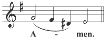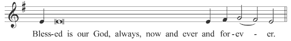 This blessing is in a minor key (la - ti - do, do - ti - la), and the "Amen" you sing in response will use exactly the same three pitches as the last three notes of the priest's blessing: