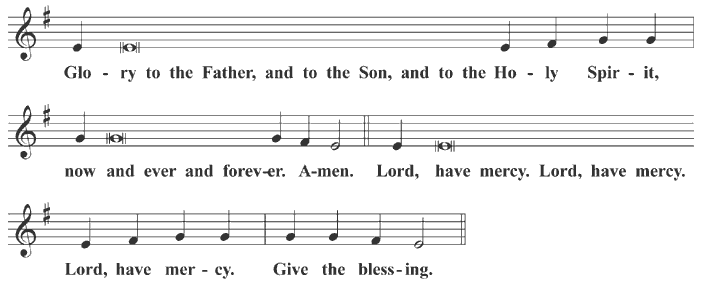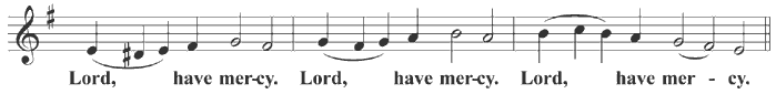 We sing a triple "Lord, have mercy" to the first three petitions. (If the deacon is intoning properly in a minor key, ending do - ti - la, he should end on the starting note of the response.)