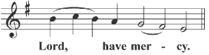 And when he intones "Let us pray to the Lord", we sing "Lord, have mercy" starting higher, on mi, giving it a somewhat mournful or plaintive sound: